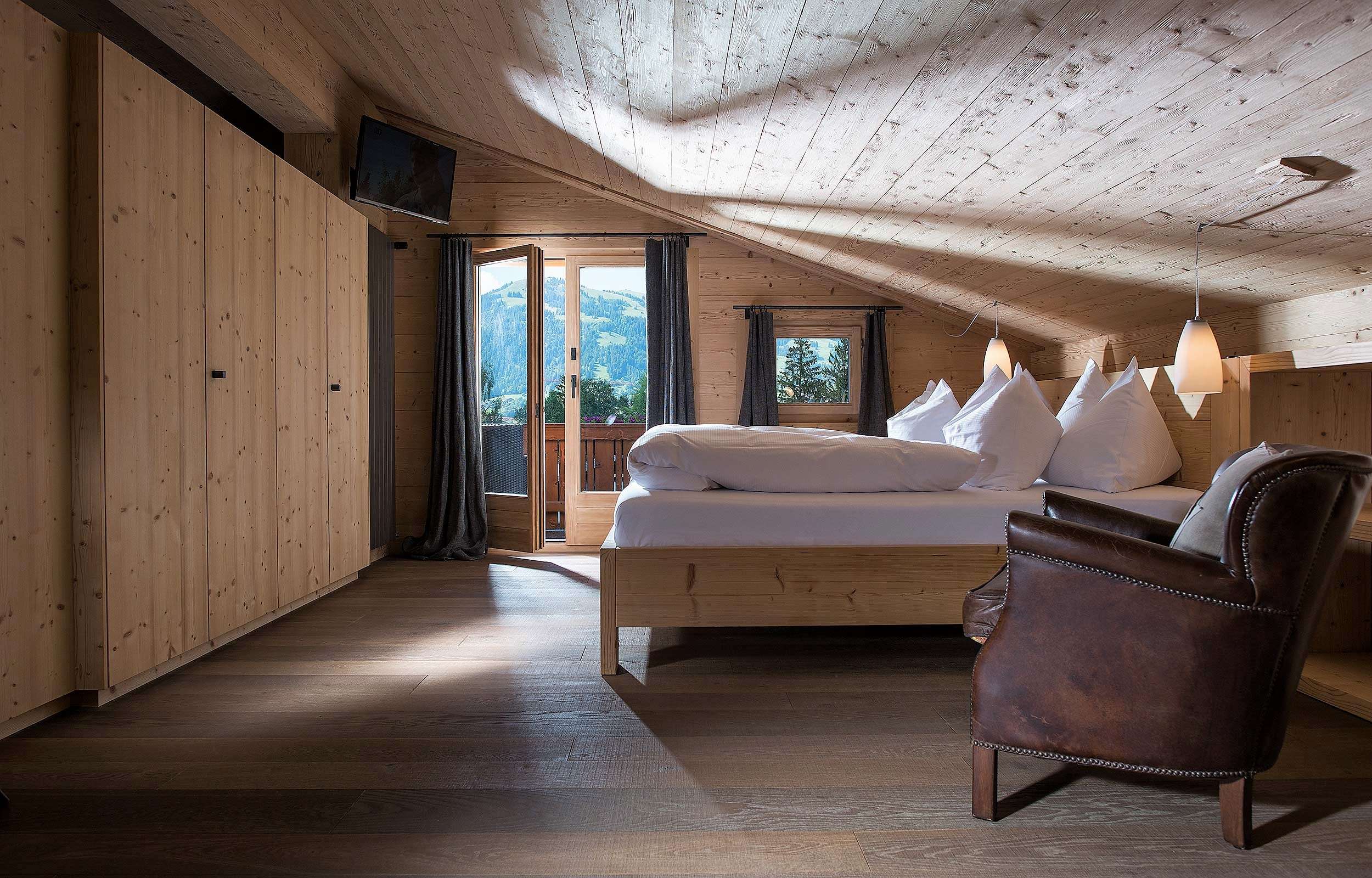 The six different Chalet Suites are designed with plenty of wood and convey a cozy chalet atmosphere.